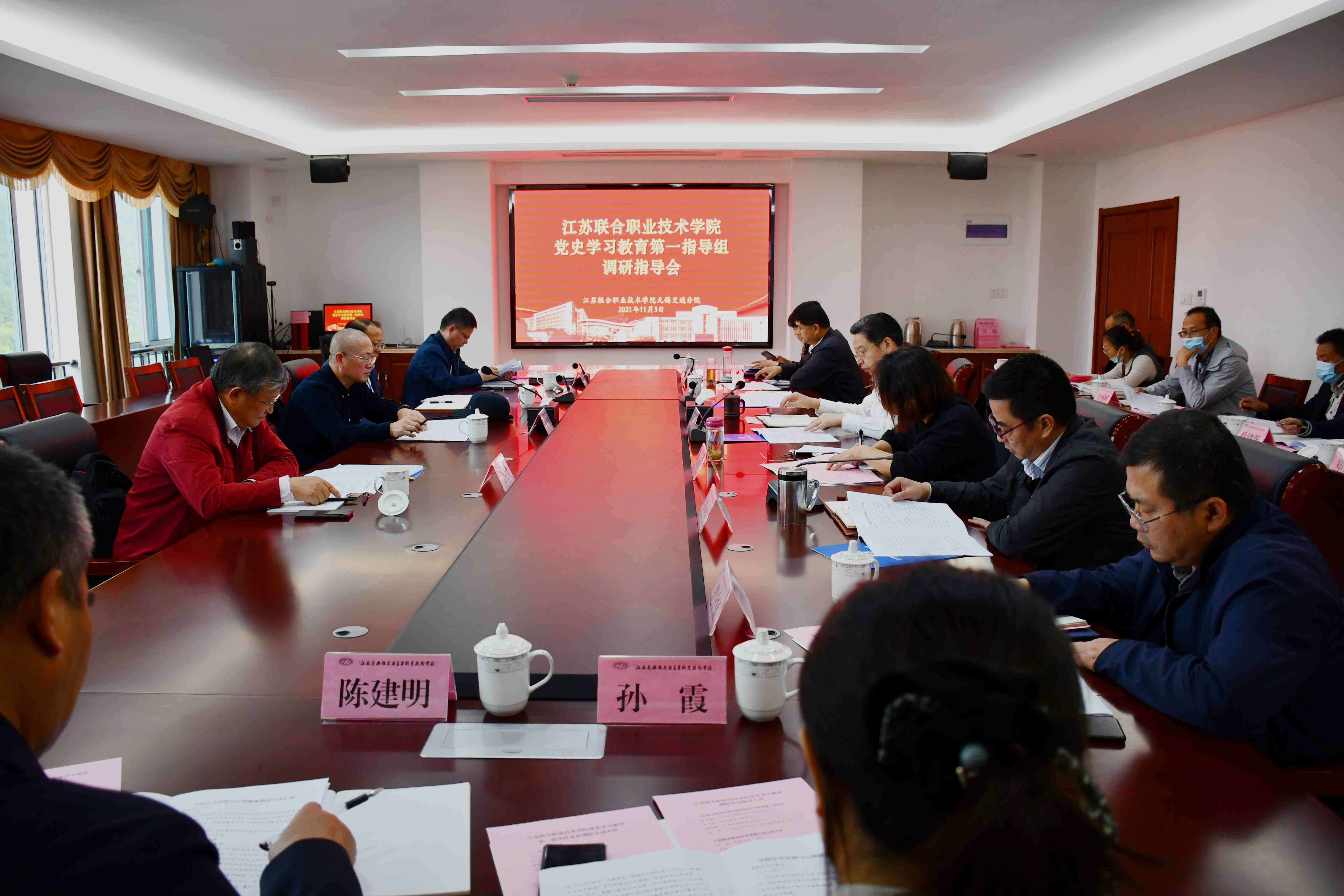 113日下午,江苏联合职业技术学院党委书记夏成满带领党史学习教育第一指导组来校调研指导,南京商贸分院校长张利海、无锡旅游商贸分院原校长秦榛蓁、江苏联合职业技术学院教学管理处处长徐伟陪同调研。全体校领导出席了会议。
