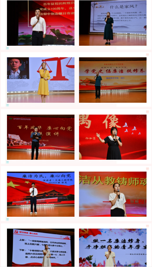 本次演讲比赛由学校各党总支(直属党支部)推荐的19位师生参加。参赛选手们围绕党史学习、党风廉政建设、师德师风建设、好家风故事、中国精神等,立足岗位、紧扣主题,以真挚的情感、流畅的语言,声情并茂地歌了党、讴歌了祖国,赞颂了中华优秀儿女的优良作风和良好家风,展示了学校教师坚守师德、廉洁从教的精神风貌诠释了忠诚、廉洁、担当的重要意义和历史使命。经过激烈地角逐,比赛最终评选出一等奖2名,二等奖4名,三等奖6名,优秀奖7名。