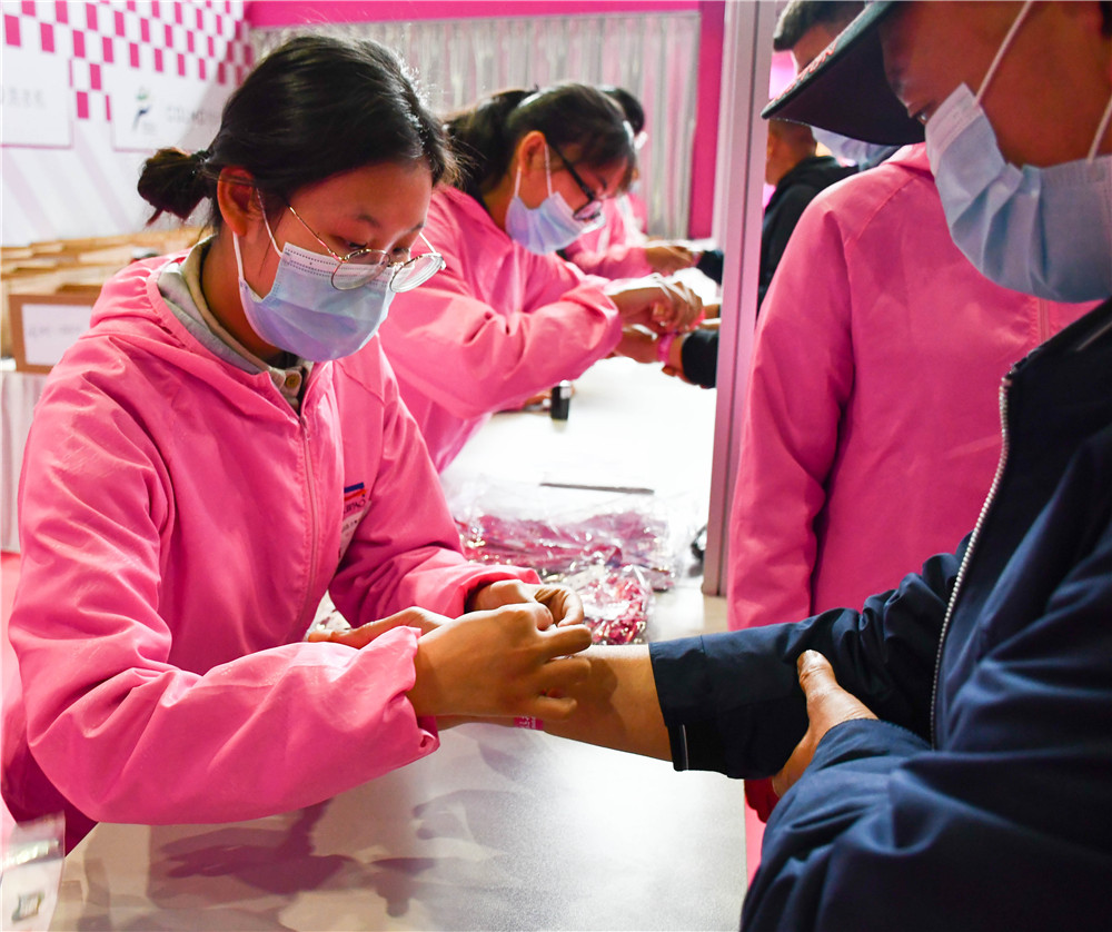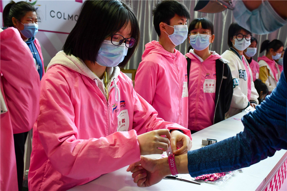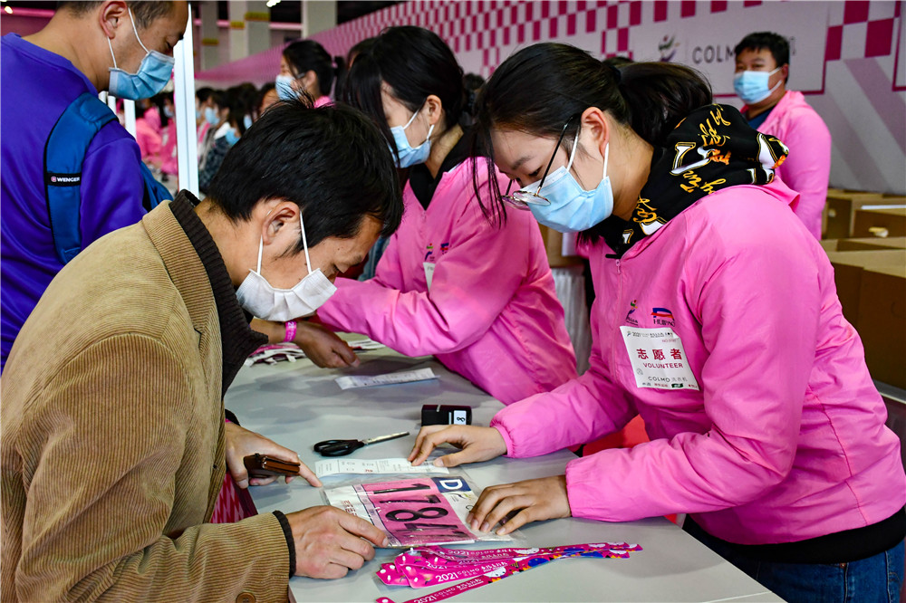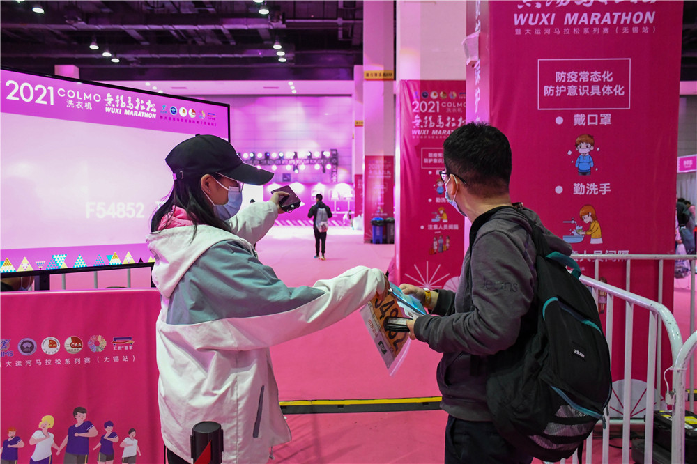 在马拉松志愿服务期间,我校志愿者们每天很早就出发奔赴无锡太湖博览中心从事赛前物料领取工作,服务于疫情防控安全检查、号码布发放、存衣包发放,赛事纪念T恤发放、人脸识别系统入场引导、检录,芯片检测服务、现场秩序管理、画面讲解、外场指引等17个岗位,用近21000个小时热情、周到、细致的服务为2021无锡马拉松保驾护航。