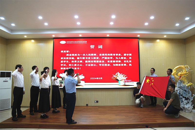 座谈会上,朱雨兰宣读江苏省交通运输厅第40个教师节慰问信。范次猛宣读“为人民教育事业服务三十年”教育工作者名单,颁发了证书和奖杯。王珏宣读了表扬通报,同时举行新入职教师宣誓的仪式。
