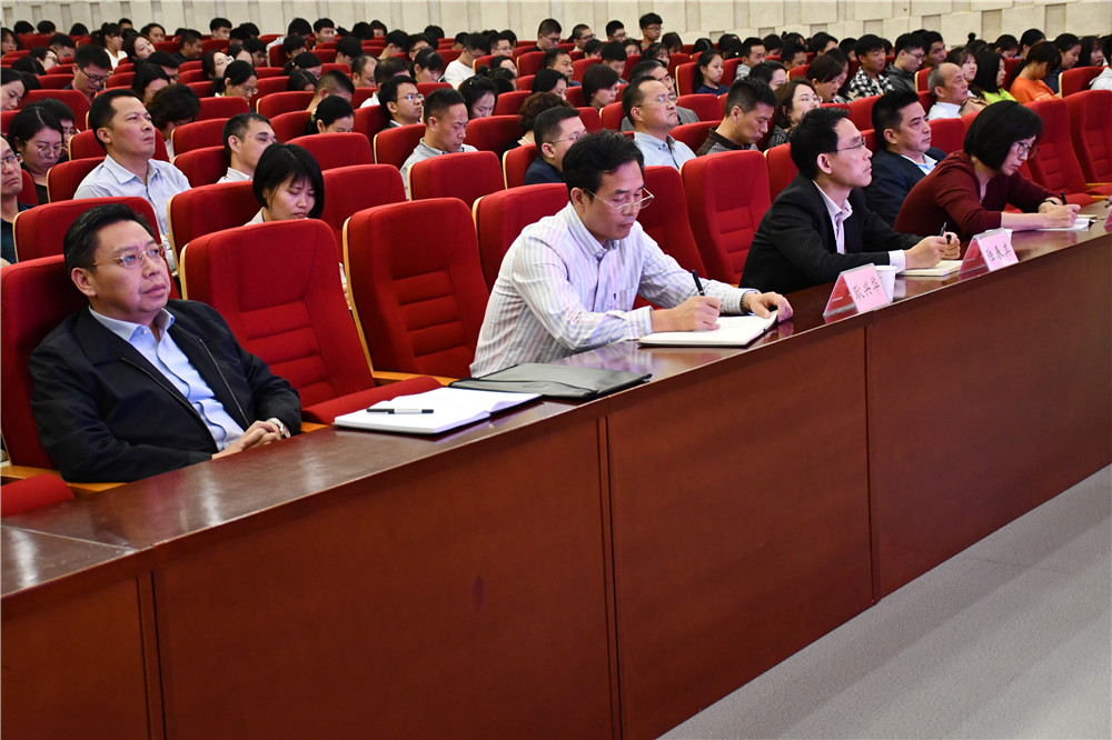 根据学校“不忘初心、牢记使命”主题教育实施方案的要求,10月9日下午,学校召开“不忘初心、牢记使命”主题教育专家辅导报告会。会议特邀请了中共江苏省委党校二级教授、国家社会科学基金重大项目首席专家王世谊同志,为大家作了《新中国70年:光辉历程、宝贵启示与现实思考》专题辅导。全体校领导、全体中层干部、全体党员、各学院班团干部参加了此次报告会。报告会由学校党委书记李虎主持。
