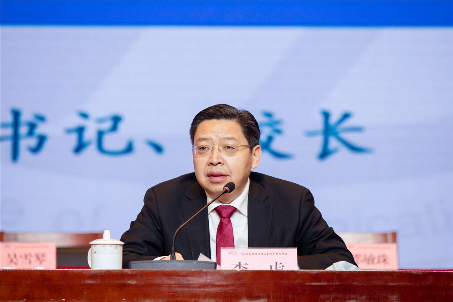 李虎书记从六个方面部署了2021年学校工作总体要求和重点任务,以党建工作为引领,促进党建与业务工作深度融合发展;以“十四五”规划编制为指引,谋划学校目标定位;以领航学校建设为主线,深化学校内涵建设;以治理能力建设为抓手,提高学校管理水平;以师资队伍建设为保障,助推学校高质量发展;以提高人才培养质量为目标,提升学生的综合能力。