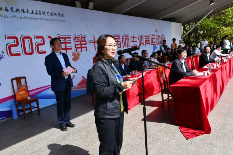学校党委副书记、纪委书记朱雨兰致辞。她表示此次运动会是在学校“十四五”规划开局之年,持续推进领航学校建设,抢抓苏锡常都市圈职业教育改革发展的关键之年召开的。具有非同寻常的历史意义。她希望全体运动员要秉承更高、更快、更强的奥林匹克精神,以高昂的斗志和顽强拼搏的精神,严守活动纪律,遵守比赛规则,尊重裁判裁定,赛出风格、赛出水平、赛出友谊。同时也希望裁判员遵守裁判员守则,做到公平、公正;全体工作人员要忠于职守、热情服务,保障安全。最后她希望广大师生员工以强健的体魄、昂扬的斗志,在学校高质量发展的进程中发挥更加积极的作用,以最具活力的姿态向庆祝建党一百周年献礼!