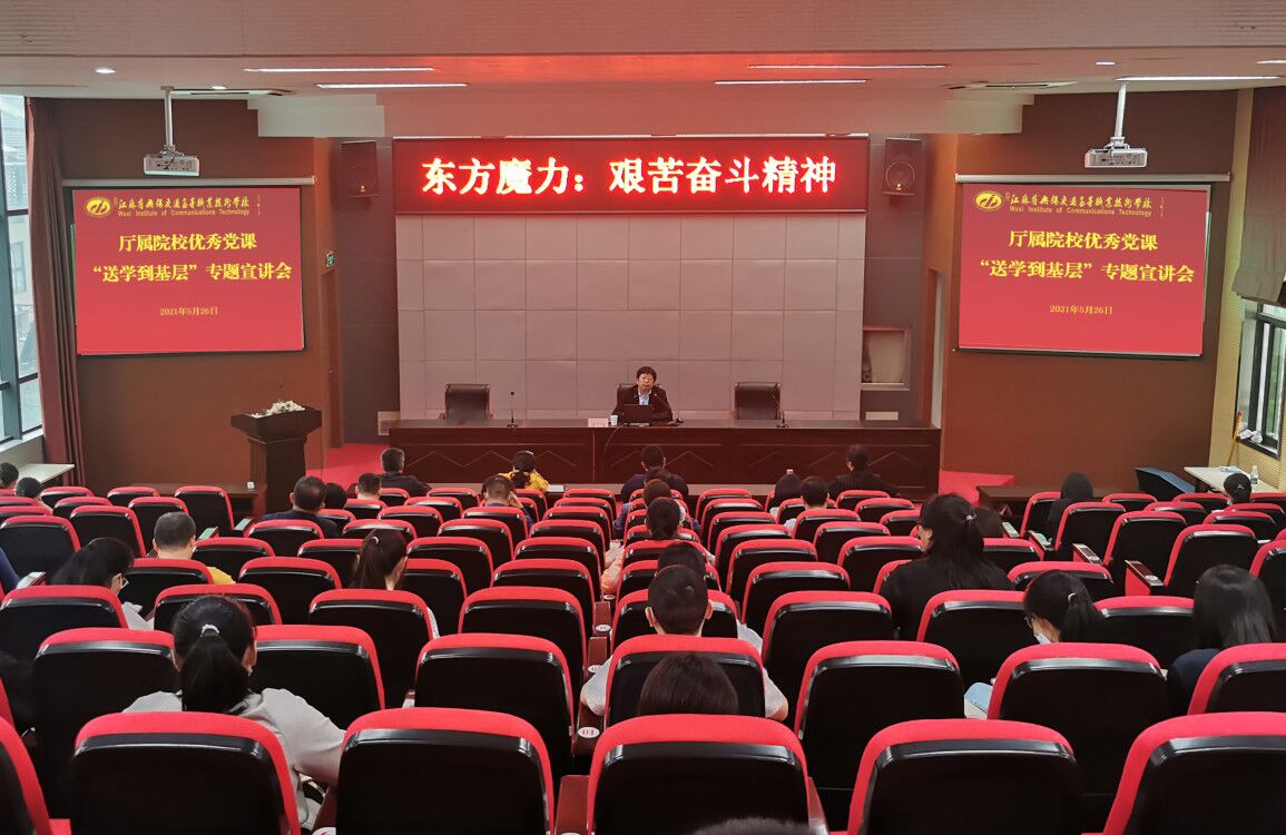 为扎实开展党史学习教育,厅党组发挥厅属院校思政教师的作用,统筹安排了厅属院校优秀党课“送学到基层”活动,强化交通基层党组织建设,5月26日下午,江苏省交通运输厅厅属院校思政教师优秀党课“送学到基层”《东方魔力:艰苦奋斗精神》专题宣讲会在学术报告厅举行,近70名党员教师和学生党员参加学习。