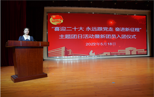 活动在庄严的国歌声中拉开帷幕。入团仪式上,各学院团总支书记为新团员代表颁发团员证,佩戴团徽,并组织老团员重温入团誓词,新团员进行入团宣誓,全体人员共同接受了一次思想的升华和心灵的洗礼。新团员吴沁尧同学、老团员李丹凤同学作为代表发言,她们均表示要紧跟习近平总书记“把青春献给祖国”的号召,坚定不移的高举团旗跟党走。不负韶华、不负时代、不负人民,敢闯、敢干,以青年人的拼搏努力,来践行“请党放心,强国有我”的铮铮誓言。