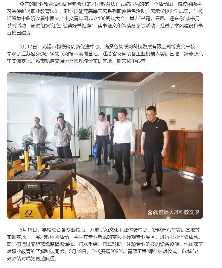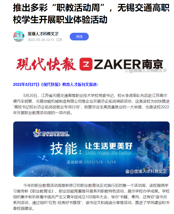 现代快报:江苏省无锡交通高等职业技术学校推出多彩“职教活动周”
