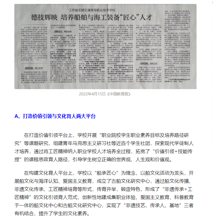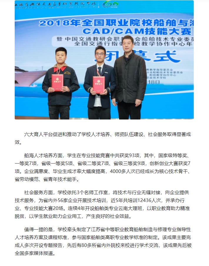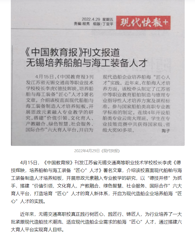 现代快报:《中国教育报》刊文报道无锡交通高职校培养船舶与海工装备人才