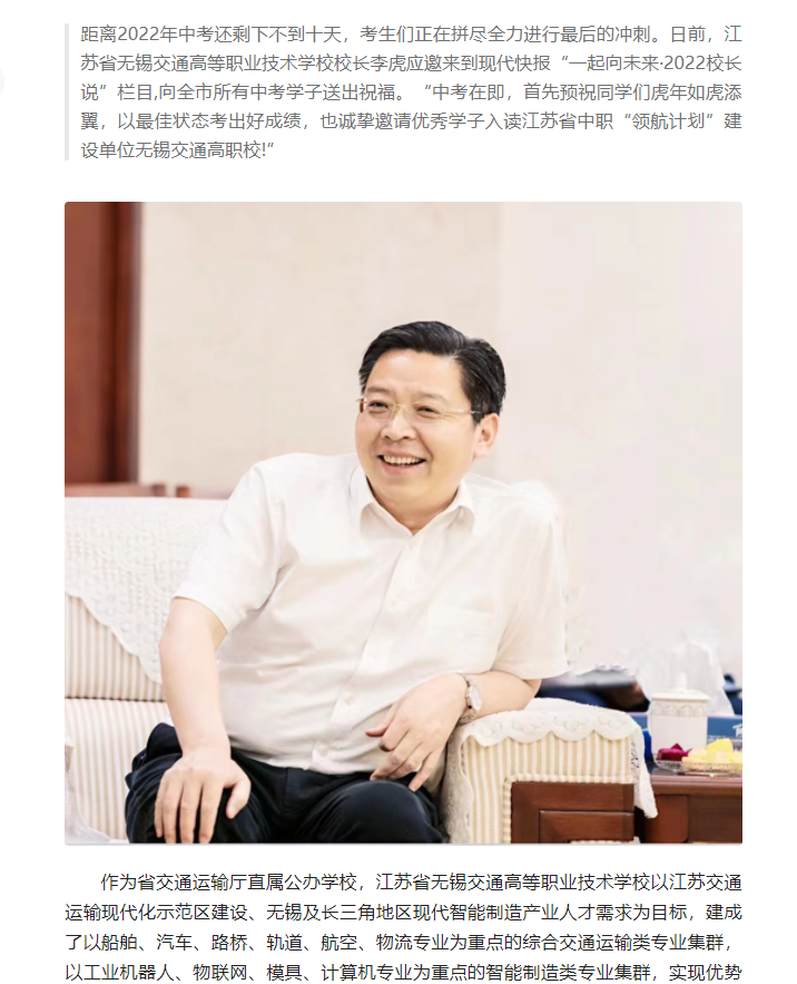 今日头条:2022·校长说 | 交通高职校校长李虎:祝考生虎年如虎添翼考出好成绩
