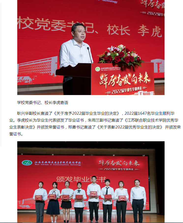 中江网:踔厉奋发向未来 江苏省无锡交通高等职业技术学校举行2022届毕业生毕业典礼
