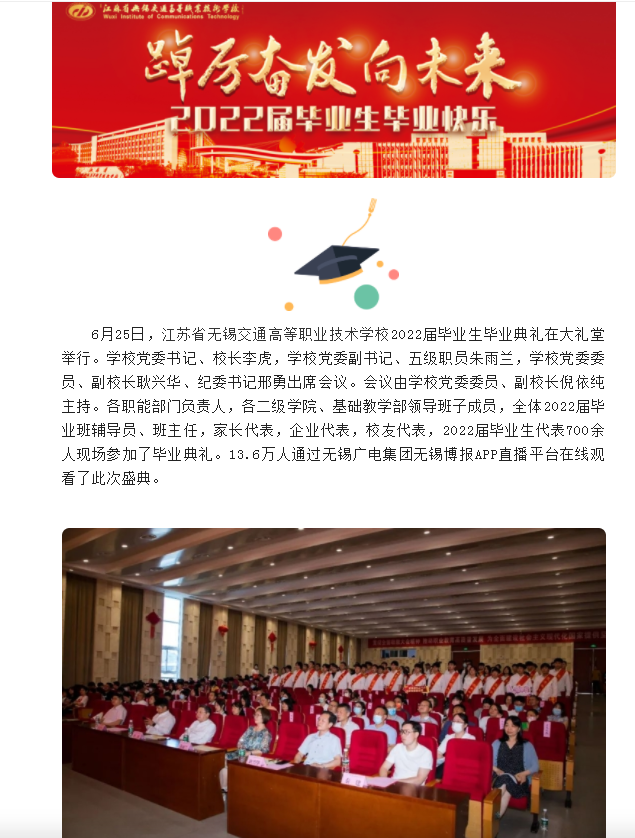 无锡博报:踔厉奋发向未来:江苏省无锡交通高等职业技术学校举行2022届毕业生毕业典礼