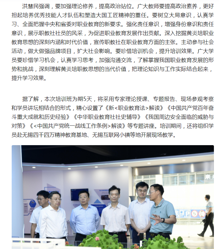 江苏省中华职业教育社第六期黄炎培职业教育思想培训班在无锡举行