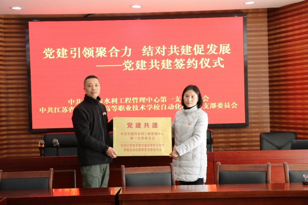 为深入学习贯彻党的二十大精神,践行敢为、敢闯、敢干、敢首创的“四敢”精神,进一步优化整合党建资源,丰富党建品牌建设内涵,2月15日下午,机电工程学院自动化教研室党支部与无锡水利工程管理中心第一党支部举行党建联盟签约仪式,签约仪式在无锡市水利工程管理中心(以下简称“中心”)举行。校党委委员、副校长耿兴华,机电工程学院党总支书记徐小国,机电工程学院院长夏春荣,机电工程学院自动化教研室党支部书记孔喜梅,无锡市水利工程管理中心党总支副书记、副主任赵欢,无锡市水利工程管理中心第一支部书记、副主任边晓阳,以及双方支部代表出席活动,活动由中心副主任边晓阳主持。