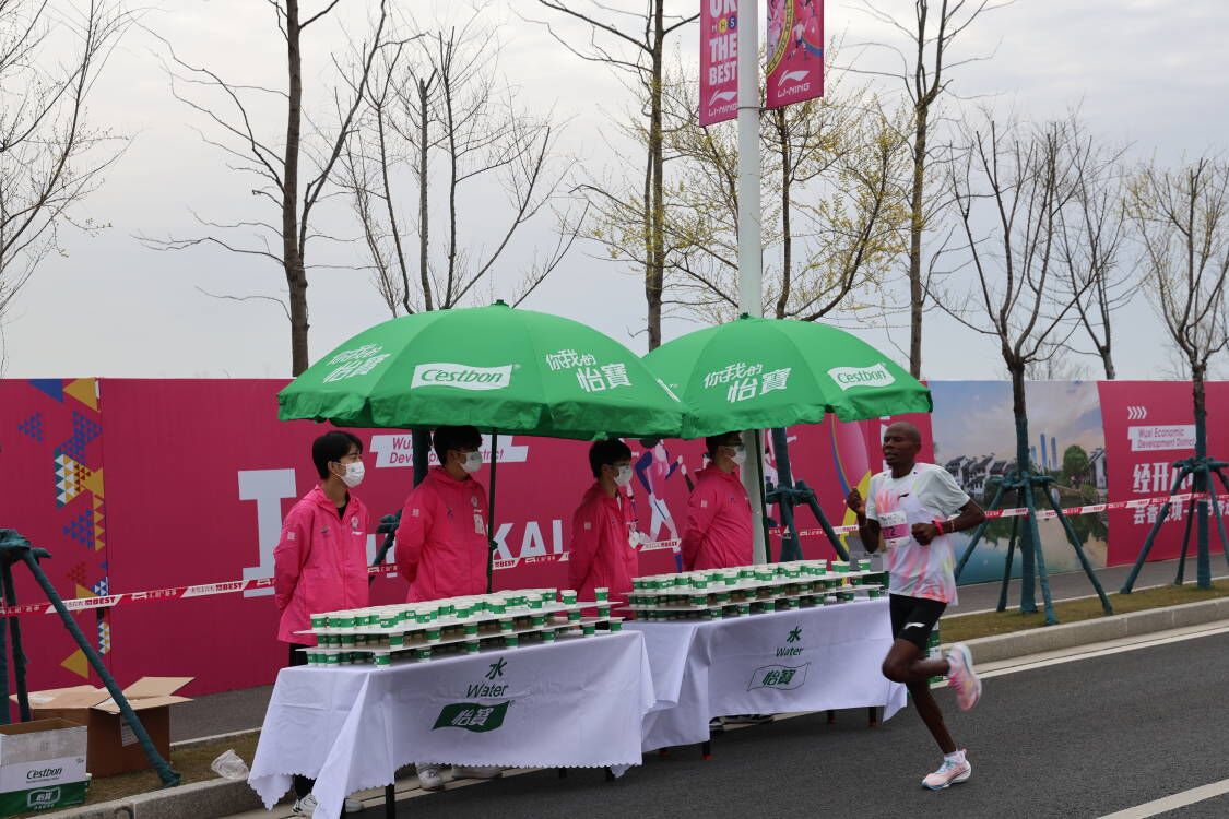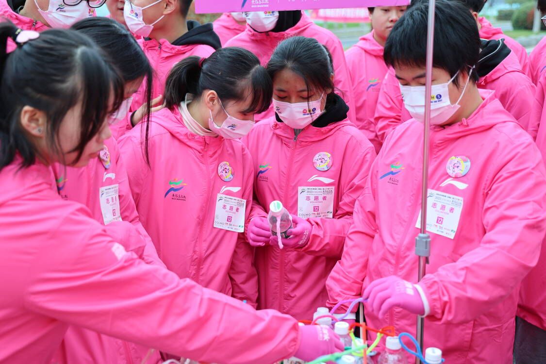 随着比赛的开始,在马拉松赛道上,除了奋力奔跑的比赛者,学校志愿者们同样成为了一道美丽风景线。他们时刻准备好为选手提供饮水,补给海绵,准备水果。早上的气温较低,补给海绵的志愿者双手冻得通红,但他们的脸上却洋溢着喜悦的微笑。他们工作有条不紊,保证着道路上补给的充足。