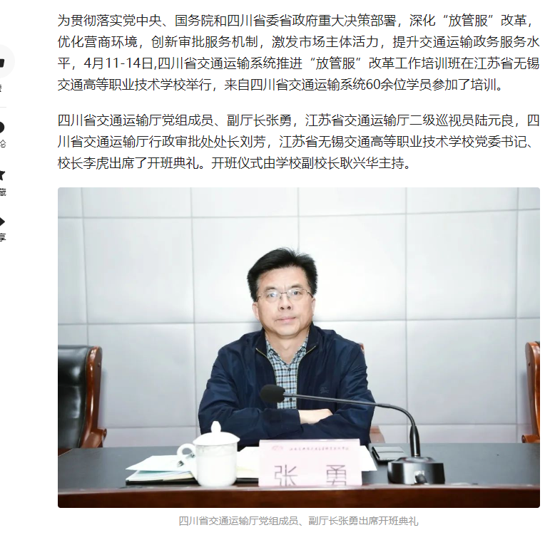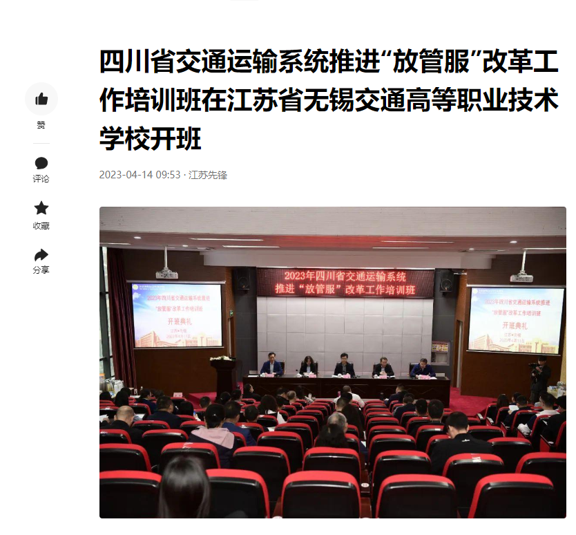 中江网:四川省交通运输系统推进“放管服”改革工作培训班在江苏省无锡交通职业技术学校开班
