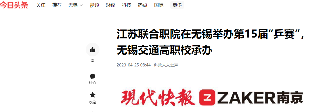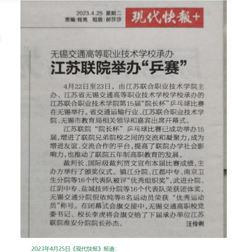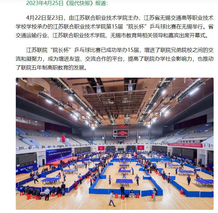 今日头条:江苏联合职院在无锡举办第15届“乒赛”,无锡交通高职校承办