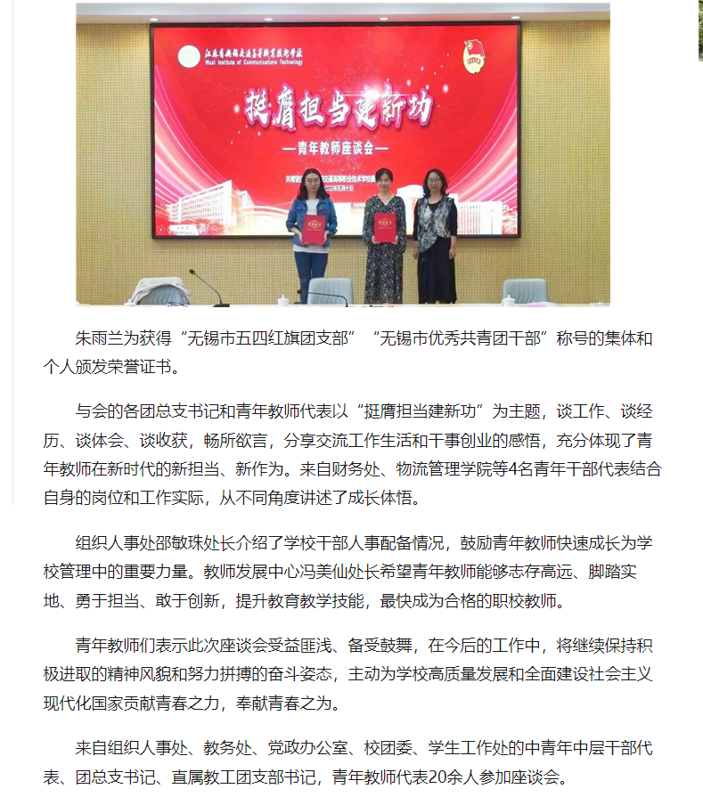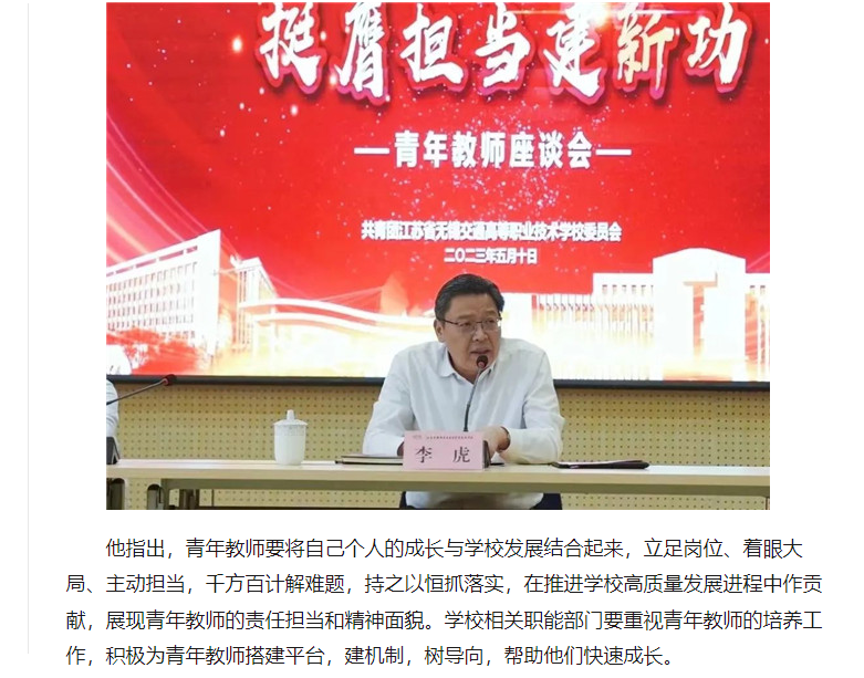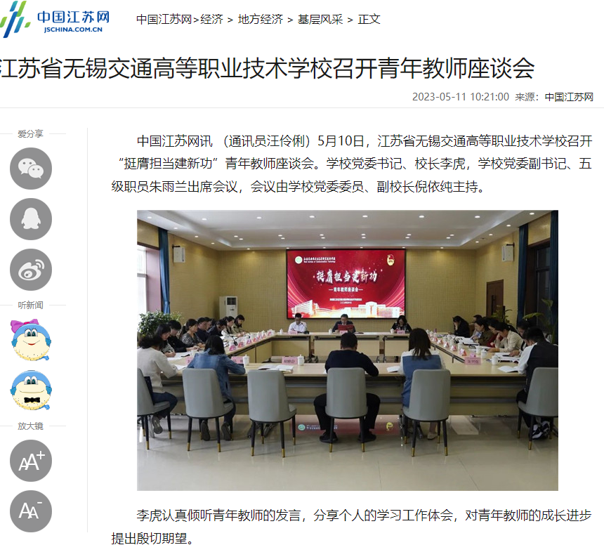 中江网:江苏省无锡交通高等职业技术学校召开青年教师座谈会