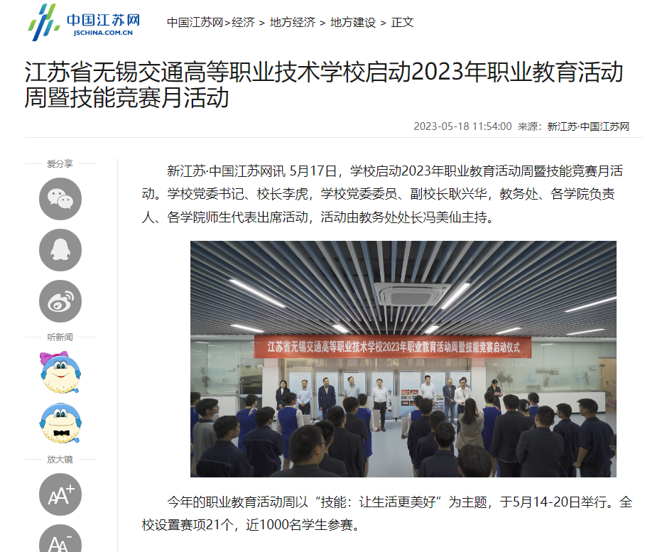 中江网:江苏省无锡交通高等职业技术学校启动2023年职业教育活动周暨技能竞赛月活动