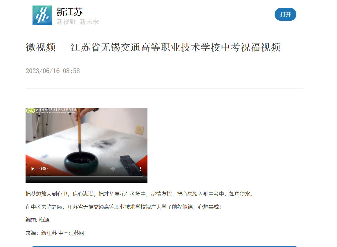 新江苏:微视频 | 江苏省无锡交通高等职业技术学校中考祝福视频