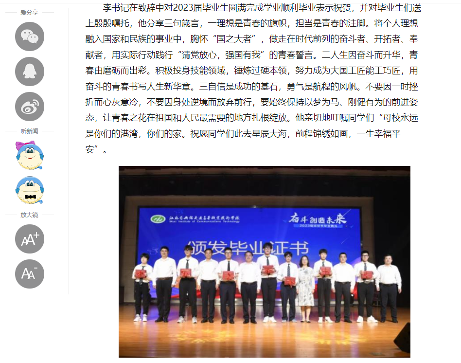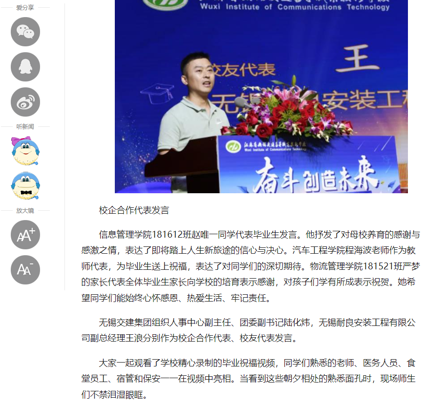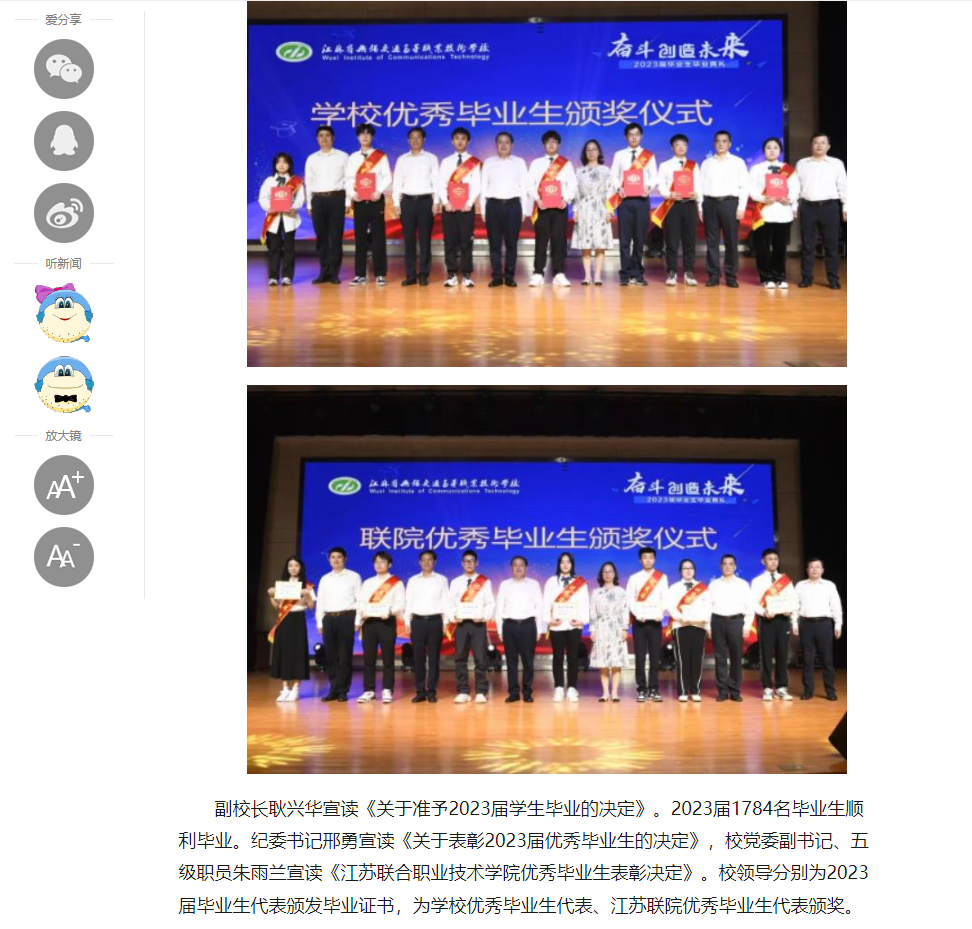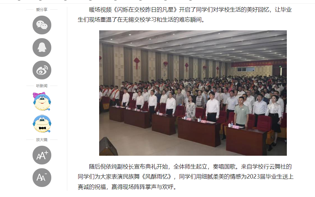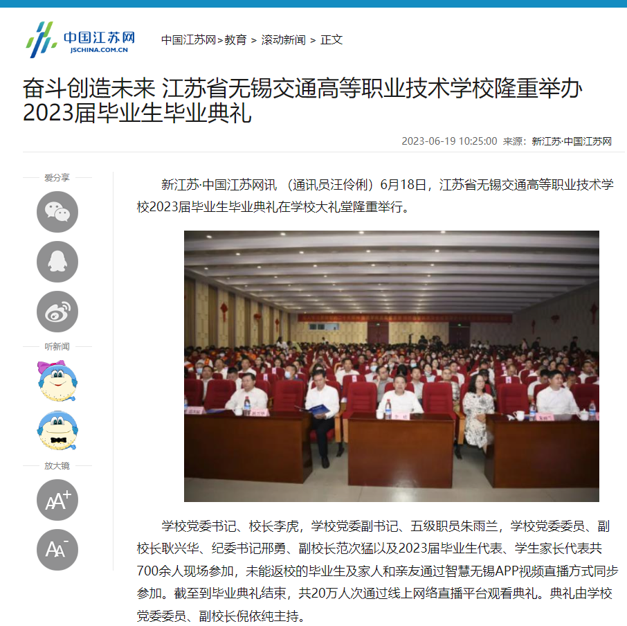 中江网:奋斗创造未来 江苏省无锡交通高等职业技术学校隆重举办2023届毕业生毕业典礼