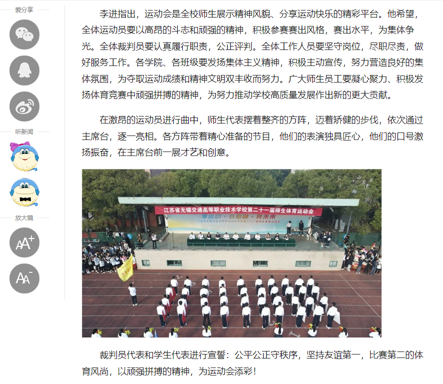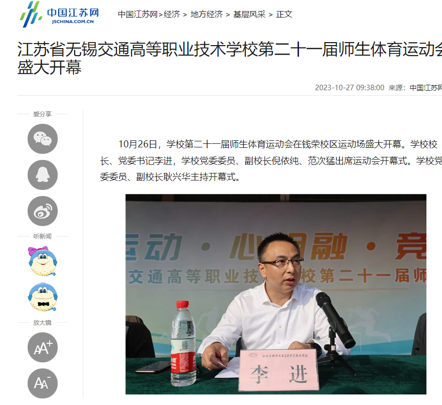 中江网:江苏省无锡交通高等职业技术学校第二十一届师生体育运动会盛大开幕