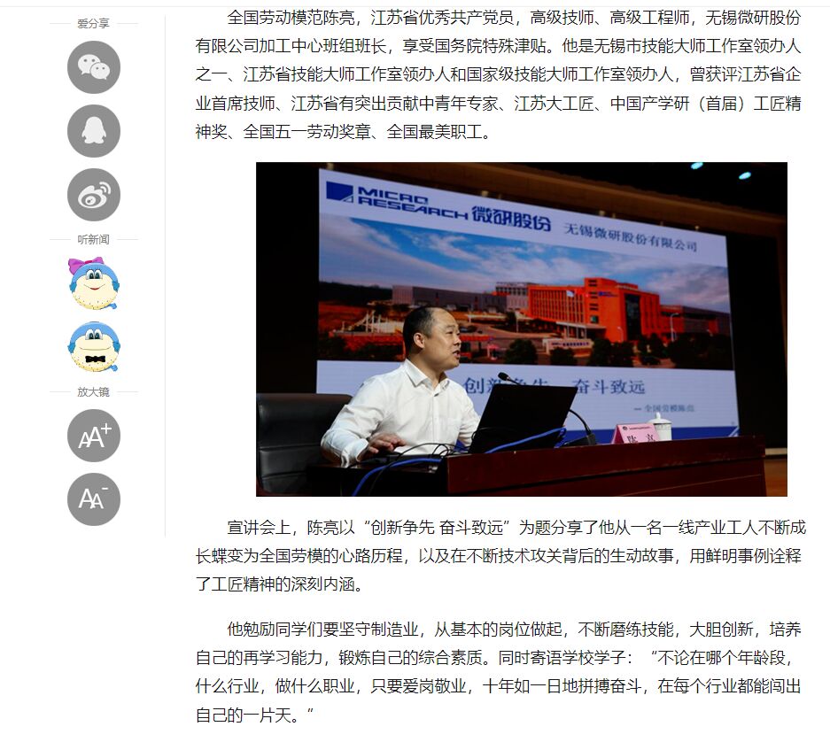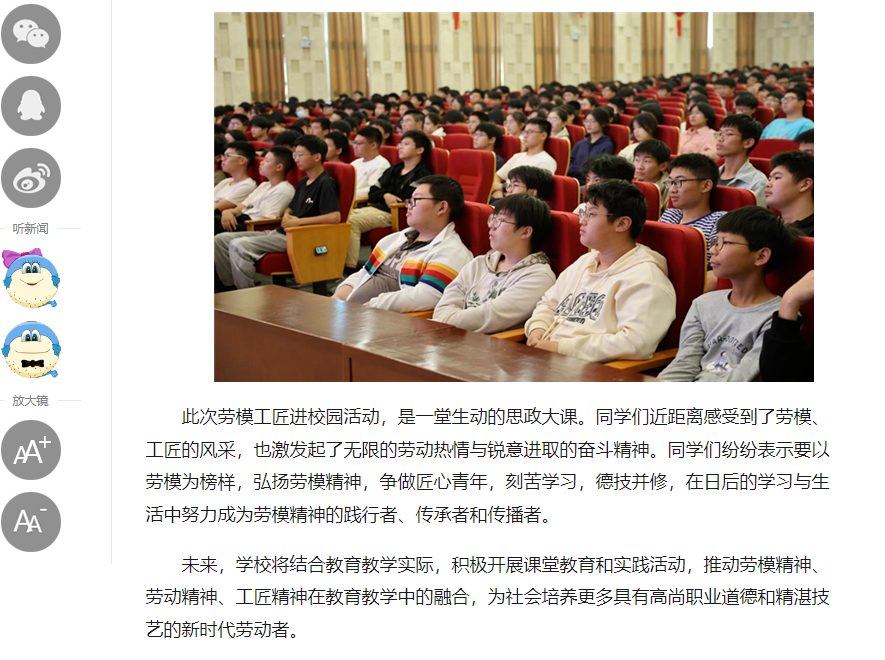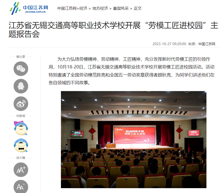 中江网:江苏省无锡交通高等职业技术学校开展“劳模工匠进校园”主题报告会