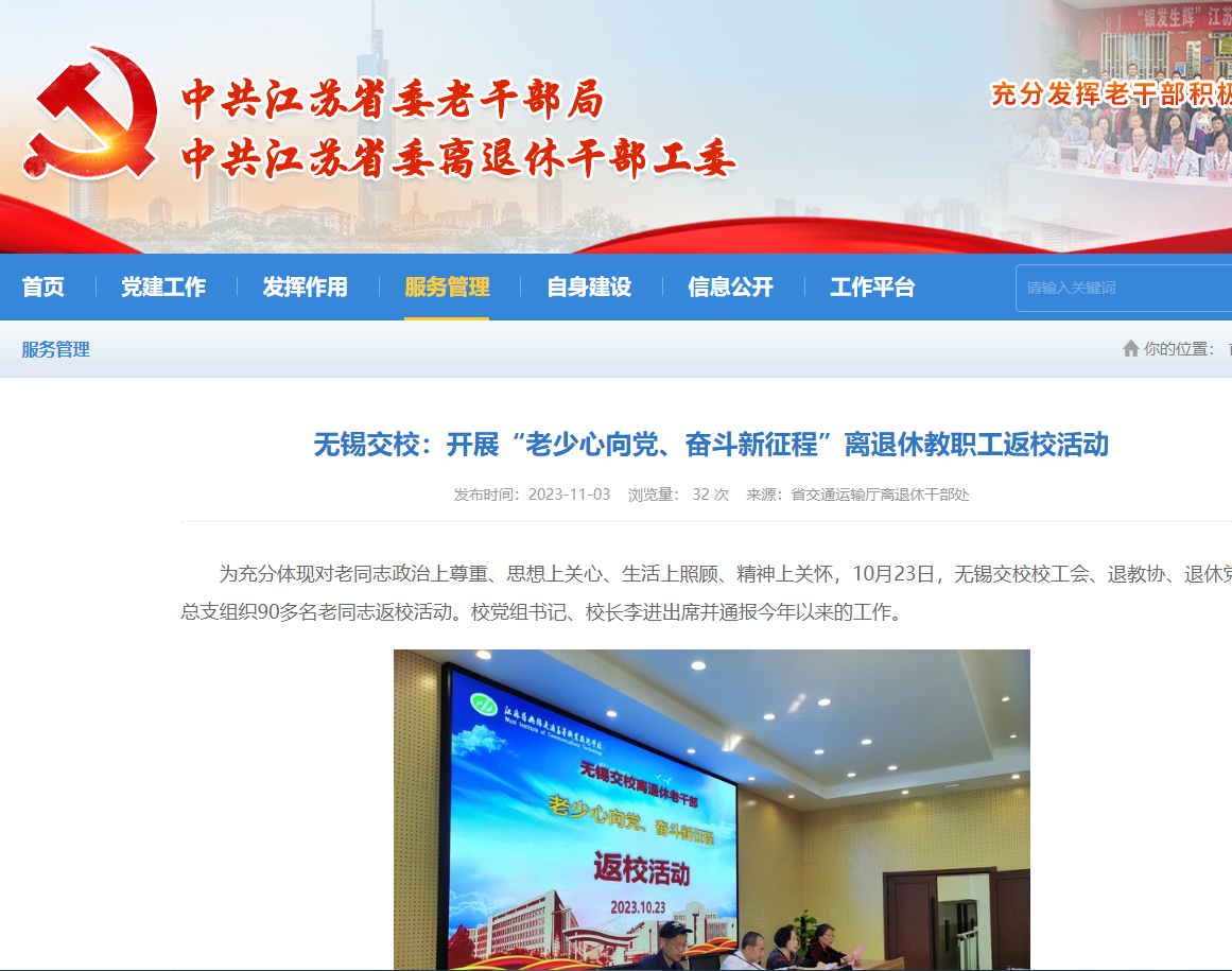 中共江苏省委老干部局:无锡交校:开展“老少心向党、奋斗新征程”离退休教职工返校活动