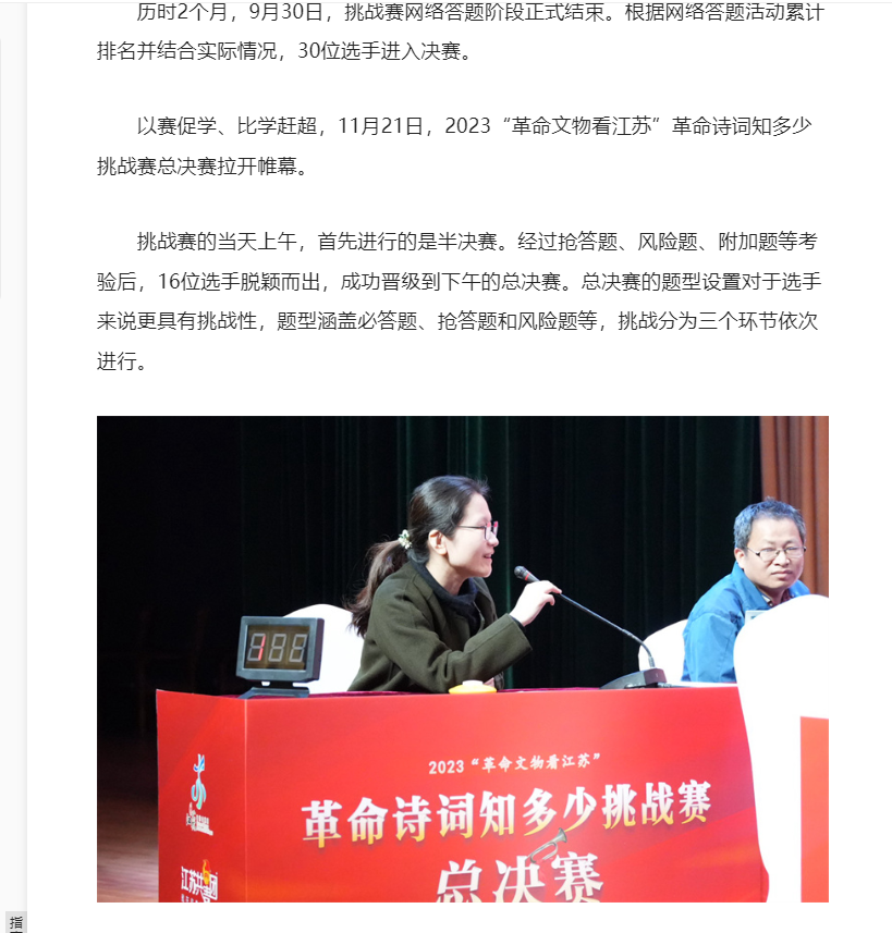 中江网:2023“革命文物看江苏”革命诗词知多少挑战赛总决赛圆满举办