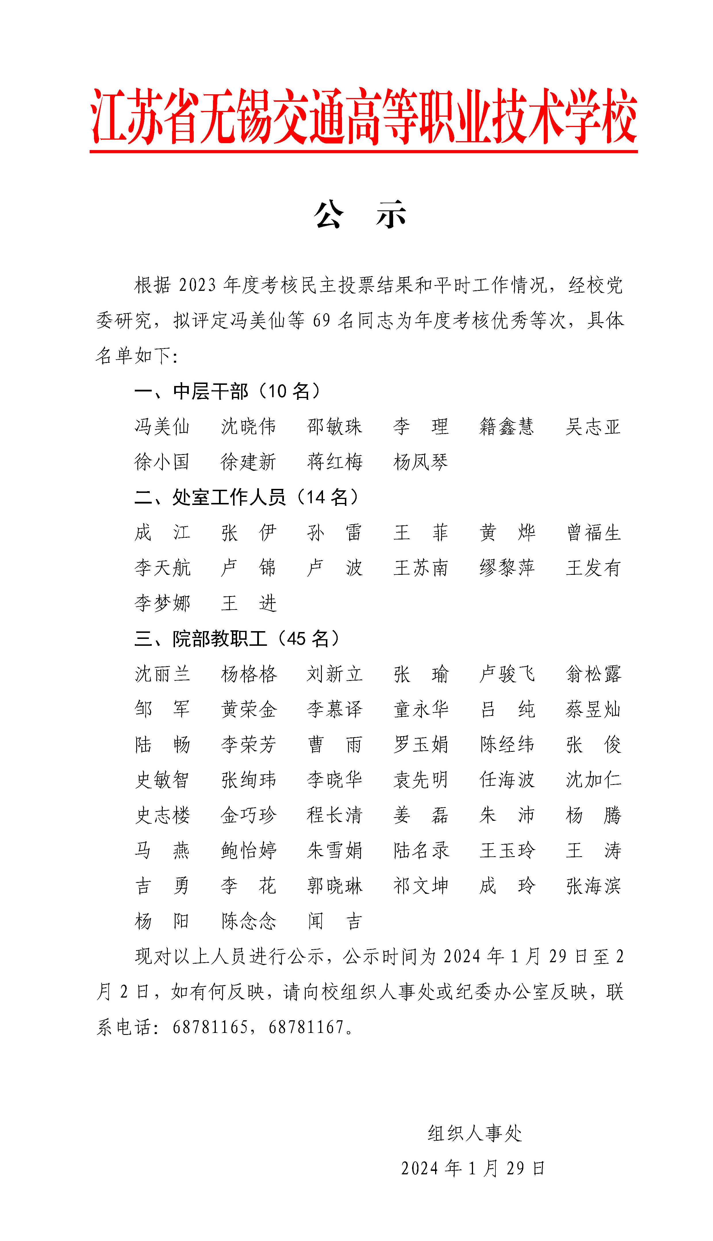 2023年度考核优秀等次人员名单公示