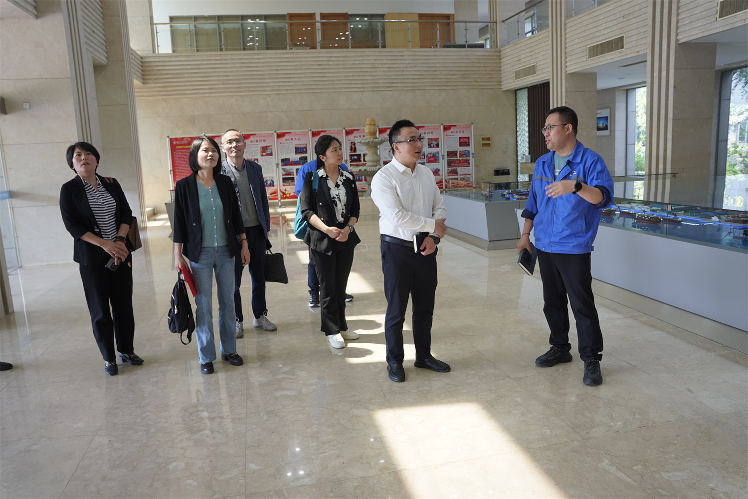 李进一行还参观了公司展览厅,了解了公司近年来的发展历程、产业布局、生产经营、产品结构和科研成果等。