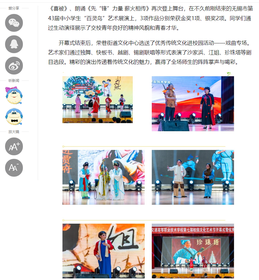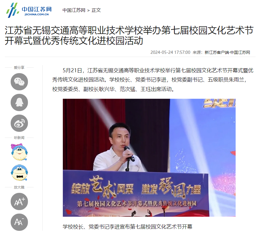 中江网:江苏省无锡交通高等职业技术学校举办第七届校园文化艺术节开幕式暨优秀传统文化进校园活动