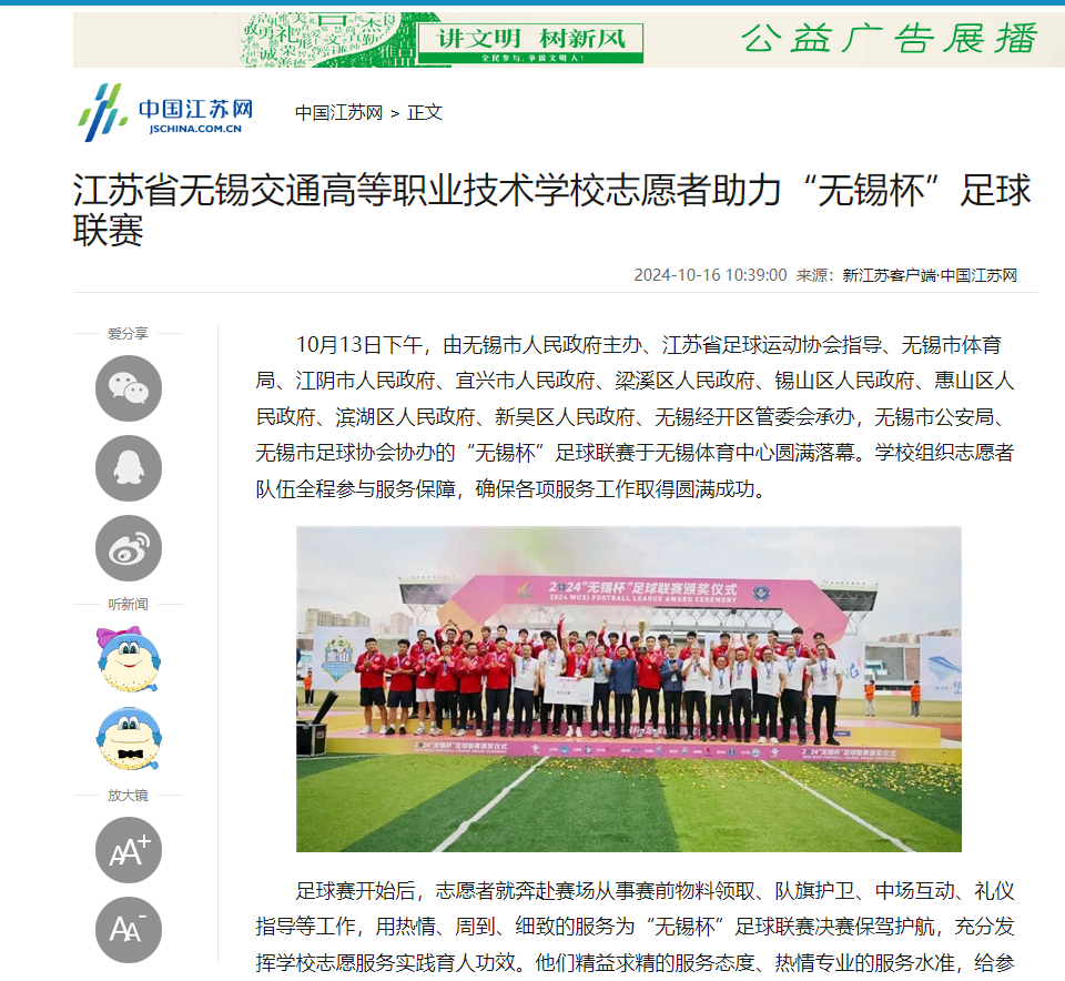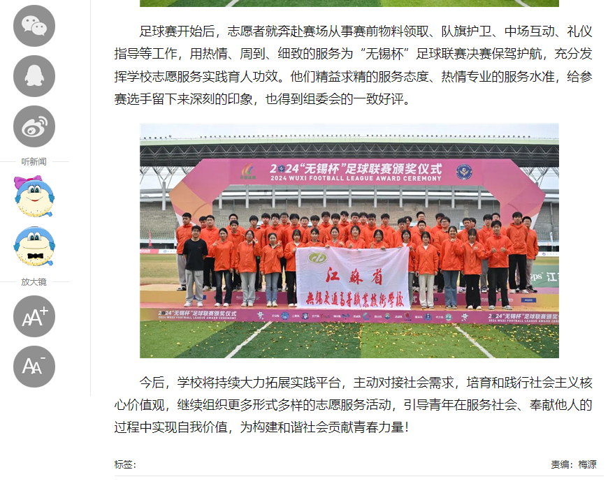 中江网:江苏省无锡交通高等职业技术学校志愿者助力“无锡杯”足球联赛