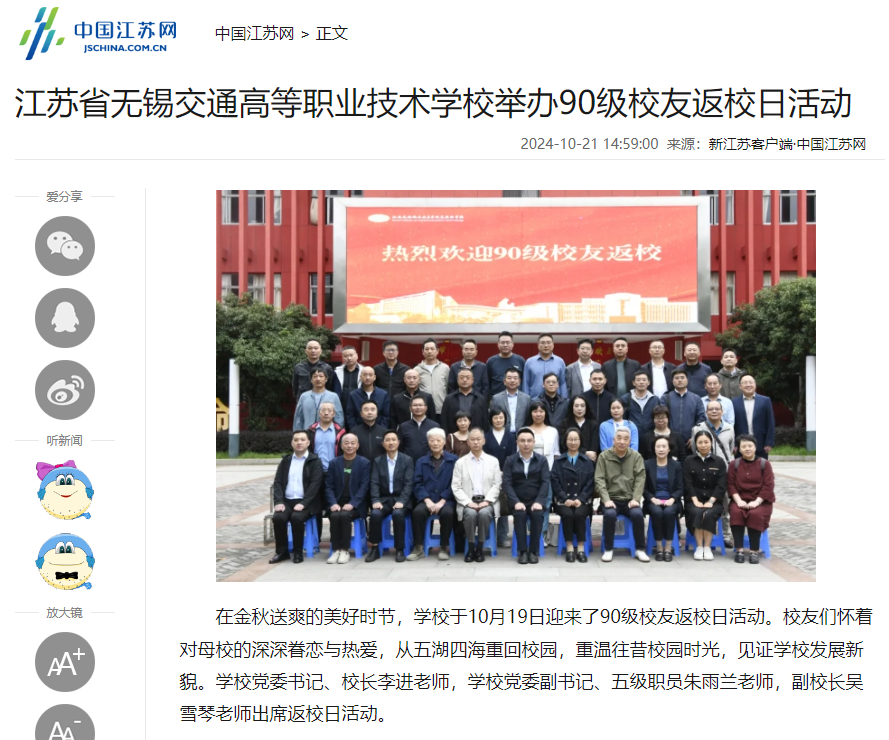 中江网:江苏省无锡交通高等职业技术学校举办90级校友返校日活动