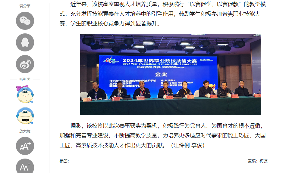 中江网:无锡学生团队荣获2024年世界职业院校技能大赛争夺赛城轨运营与维护赛项金奖