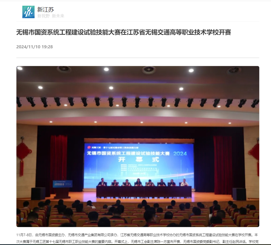 新江苏:无锡市国资系统工程建设试验技能大赛在江苏省无锡交通高等职业技术学校开赛