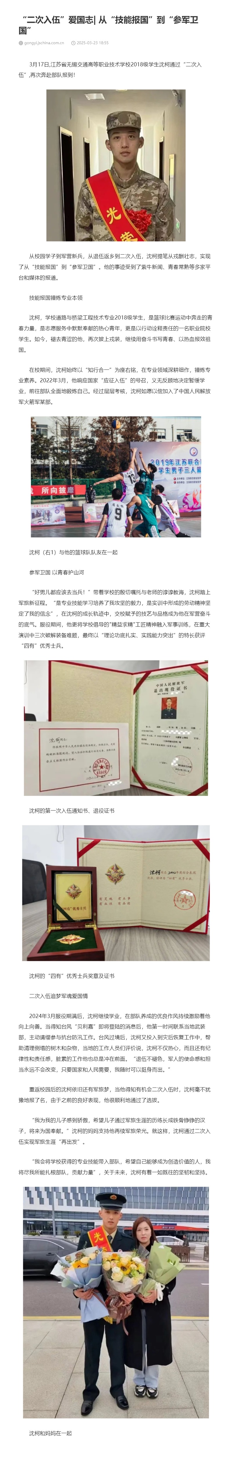 中国江苏网:“二次入伍”爱国志| 从“技能报国”到“参军卫国”