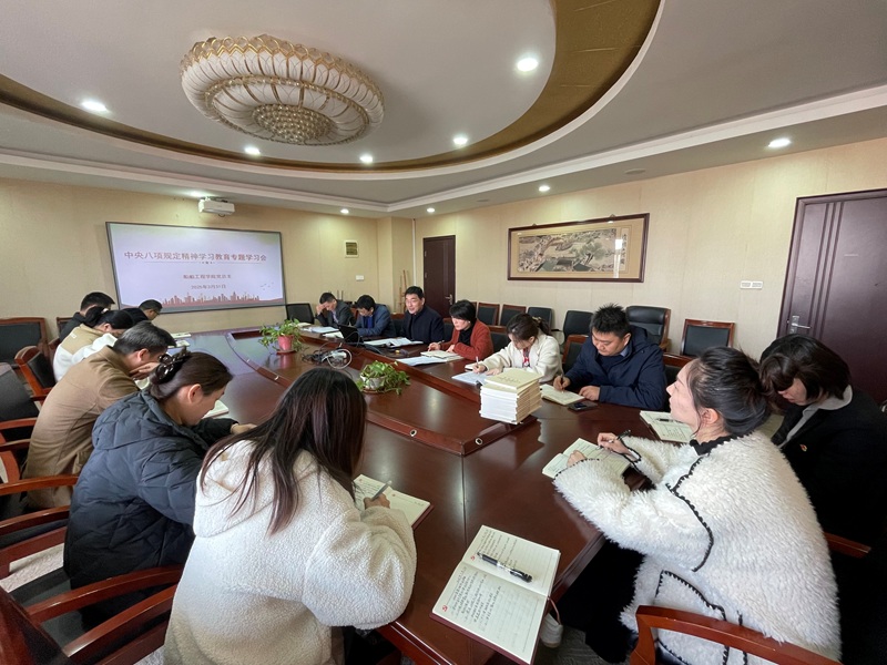 2025 3 31 日中午 12 15 分,船舶工程学院党总支在学院会议室召开理论学习中心组学习(扩大)会。本次会议围绕 “深入学习贯彻中央八项规定精神,强化作风建设,打造廉洁高效队伍” 这一主题展开。学习会由学院党总支副书记刘方主持,学院领导班子成员、内设机构负责人以及全体党员共同参与,旨在进一步加强学院作风建设,营造风清气正的良好工作氛围。