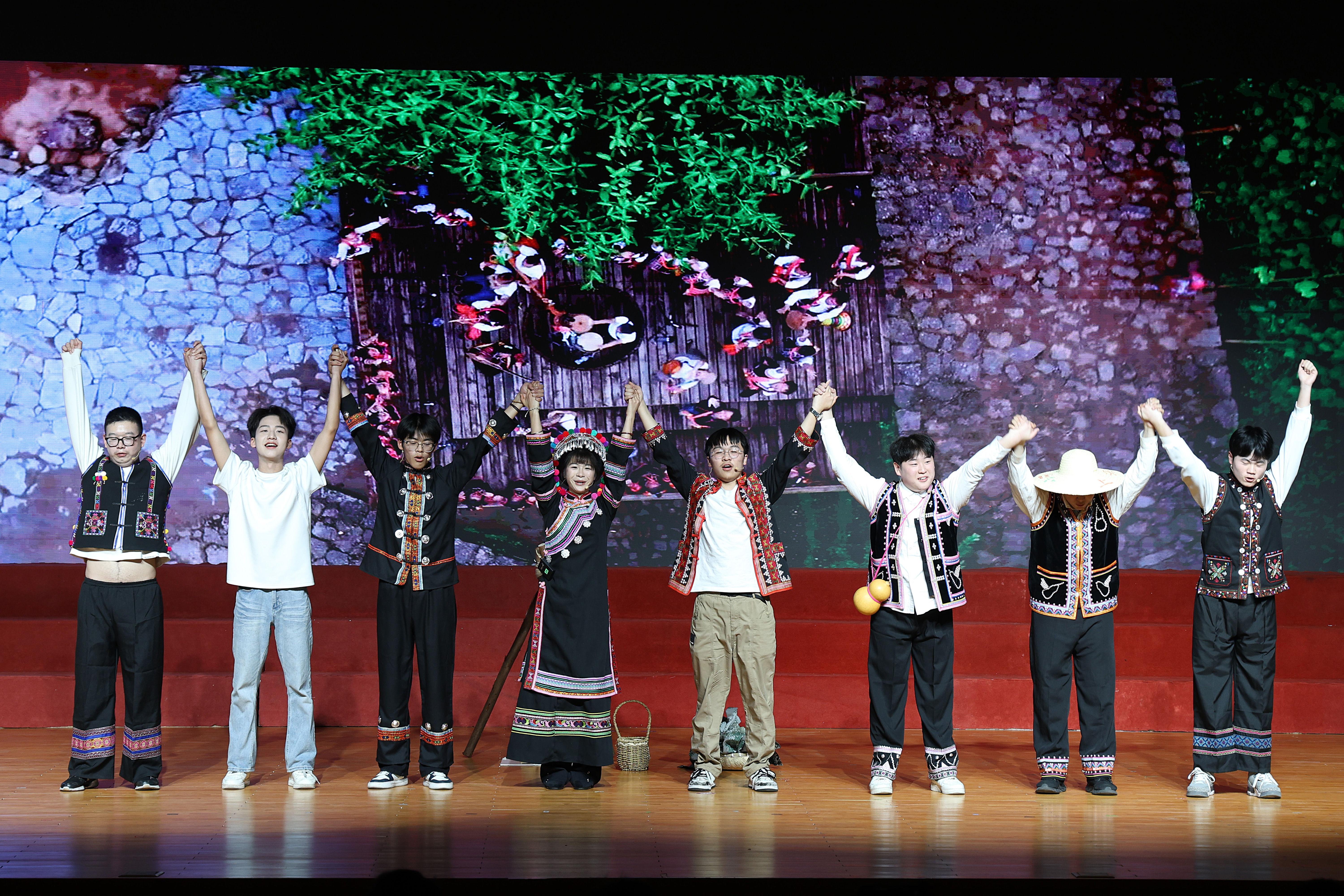 开幕式上,学生社团以精湛表演展现青春风采与文化魅力:开场曲《世界赠予我的》以温暖歌声传递交校学子对生命的礼赞,拉开活动序幕;音诗画《唐风·宋韵》融合汉服舞蹈、诗词吟诵与水墨丹青,演绎千年文化之美;话剧《拉祜脱贫记》以真实脱贫故事为蓝本,展现青年责任担当,引发观众共鸣;合唱《如愿》以激昂旋律致敬奋斗精神,唱响交校人逐梦未来的坚定信念。朗诵《人生最美是读书》以深情语言呼吁师生“在字里行间遇见星辰大海”,将活动推向高潮。