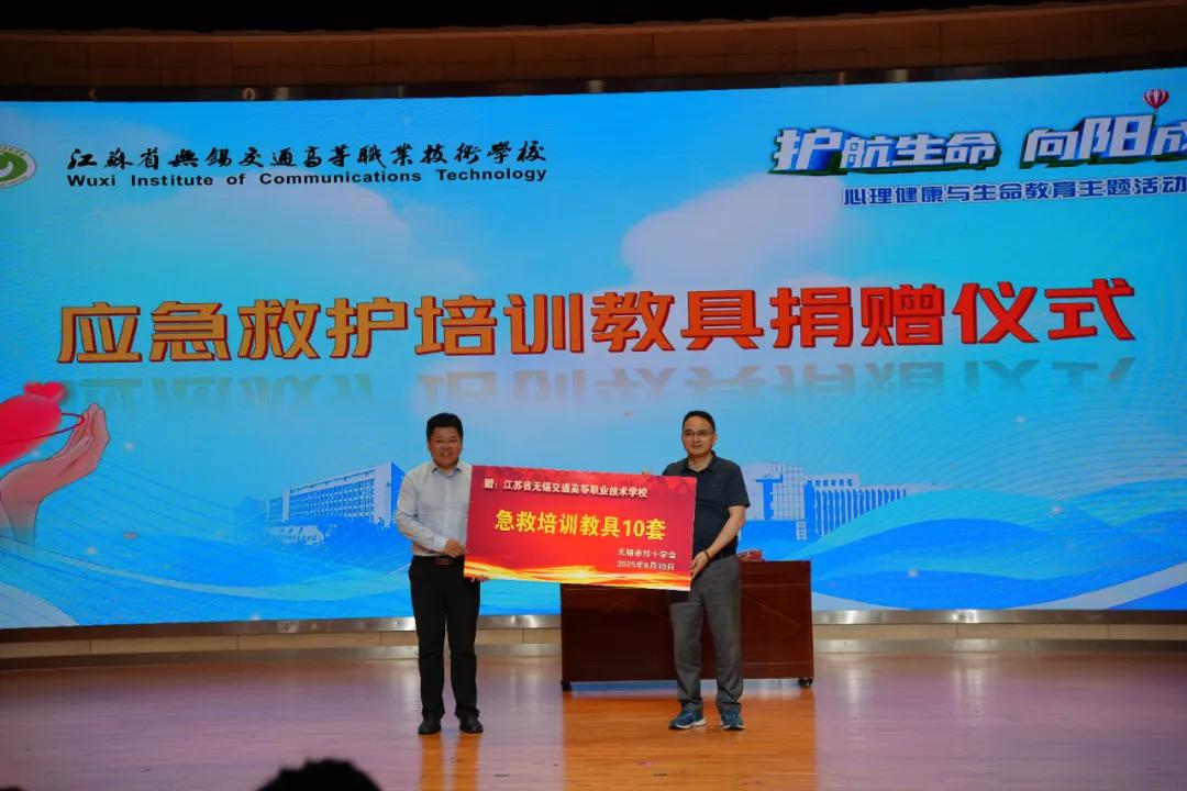 活动中,无锡市红十字会授予学校“生命教育联盟单位”铜牌,双方签署《生命教育联盟协议》,建立“资源共享、优势互补、协同育人”长效机制。红十字会捐赠专业急救培训教具,重点赋能空中乘务等专业实训,夯实培养“民航生命守护者”硬件基础。