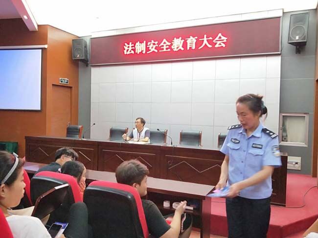 学期已接近尾声,暑假即将来临。为了进一步加强学生的法制安全和增强法制安全责任感,关注学期末学生的心理波动,帮助同学们平稳、有序地结束学习任务,让同学们过上一个安全、快乐的暑假,学校根据年度安全教育计划,结合学校教育教学阶段工作实际,6月28日下午,邀请无锡市梅园派出所胡雨虹警官来校做教育讲座。