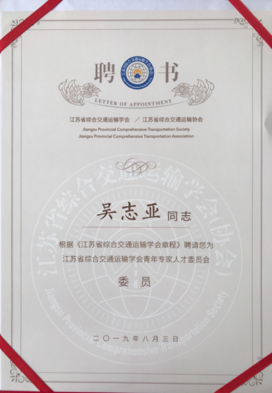 江苏省交通运输工程高(中)级专业技术资格评审委员会委员;