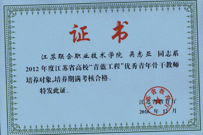 江苏省高校“青蓝工程”优秀青年骨干教师
