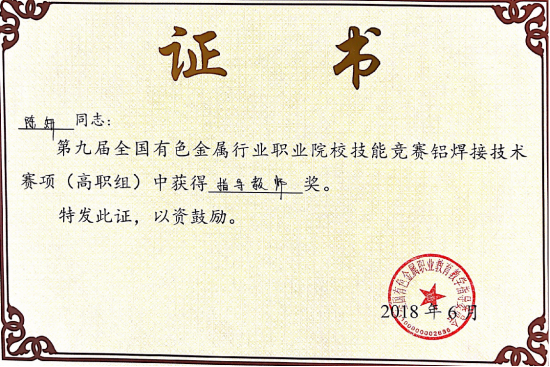 第九届全国有色金属行业职业院校技能大赛优秀指导教师