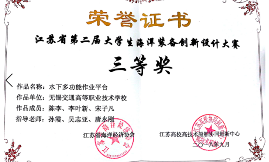 江苏省第二届大学生海洋装备创新设计大赛