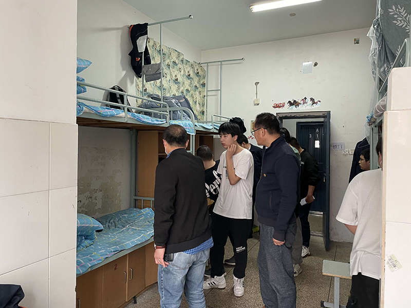 学院领导们对各年级男生宿舍进行了走访检查,重点对宿舍卫生状况、生活物品摆放状况、私拉乱接电线、使用大功率违禁电器等现象进行了逐一排查,并敦促学生积极整改。安全卫生检查结果总体良好,但部分寝室卫生状况仍有待改善。走访检查之余,学院领导们与同学们进行了亲切的交谈,提醒学生注意宿舍安全卫生,严格遵守宿舍管理规定,共同营造整洁安全的寝室环境,切实维护学校的安全与稳定。