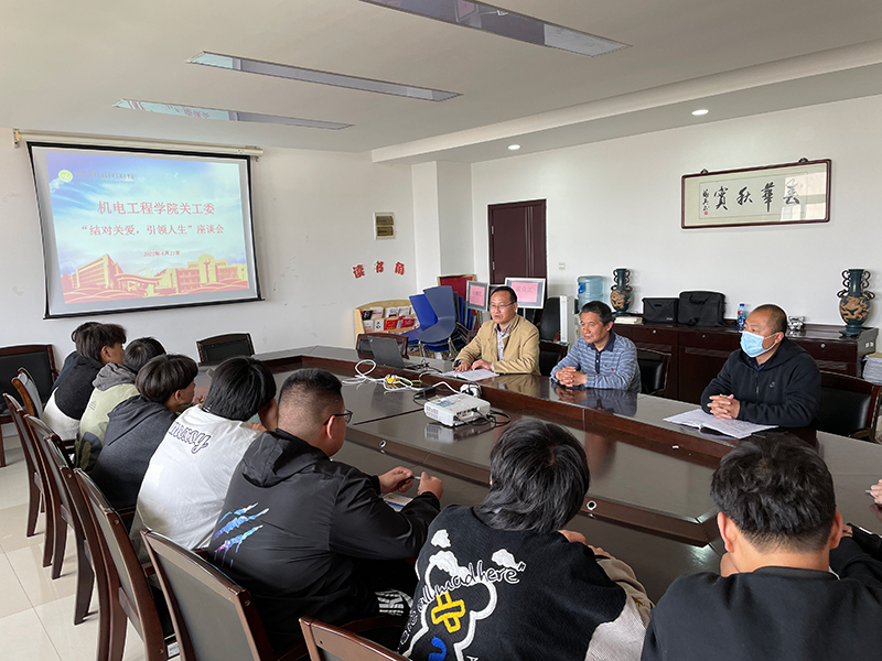 421日中午,机电工程学院关工委组织结对关爱,引领人生座谈会,学院党总支书记徐小国、党总支副书记王光祥、关工委常务副主任薛刚云及学生代表参加座谈会。
