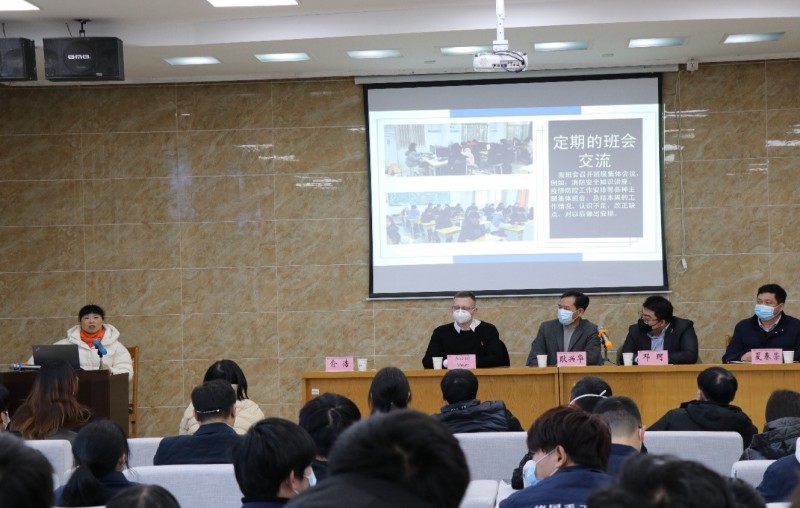 第三阶段,双方领导讲话。机电工程学院夏春荣院长总结了工业机电师项目的培养目标和方向,期中考核存在的问题,并对下一阶段的工作做了规划;德国手工业行会邓珂博士表达了四个感谢(感谢学员、家长、老师、学校),对学员们提出了三个“幸运”,同时他分析了学员们中期考核的成绩,表示将加强对学员们末期考核的指导和练习,预祝大家都能顺利取得工业机电师证书;耿兴华校长最后讲话,他对学员们提出了殷切希望,希望学员们对中期考核做一个系统总结,补短板,强优势,争取在末期考核中取得更优异的成绩,同时希望学校和德国手工业行会能进一步加强交流沟通,把工业机电师项目做好做强,努力创建品牌优势,为学校和德手会创造更好的品牌影响力。