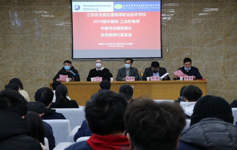 为进一步开展好德国手工业行会工业机电师培养项目,不断总结经验和成果,激励同学们将更多的精力投入到项目学习中,机电工程学院与德国手工业行会中国项目办于2022年12月14日下午,在锡澄校区举行了2019级工业机电师中期考试颁奖典礼。学校党委委员、副校长耿兴华,德国手工业行会中国项目办总负责人邓珂博士、机电工程学院院长夏春荣、德国手工业行会教官Andreas Meyer、学院优秀教师、家长代表、全体2019级中德班学生等参加了本次颁奖典礼,会议由机电工程学院副院长俞浩主持。