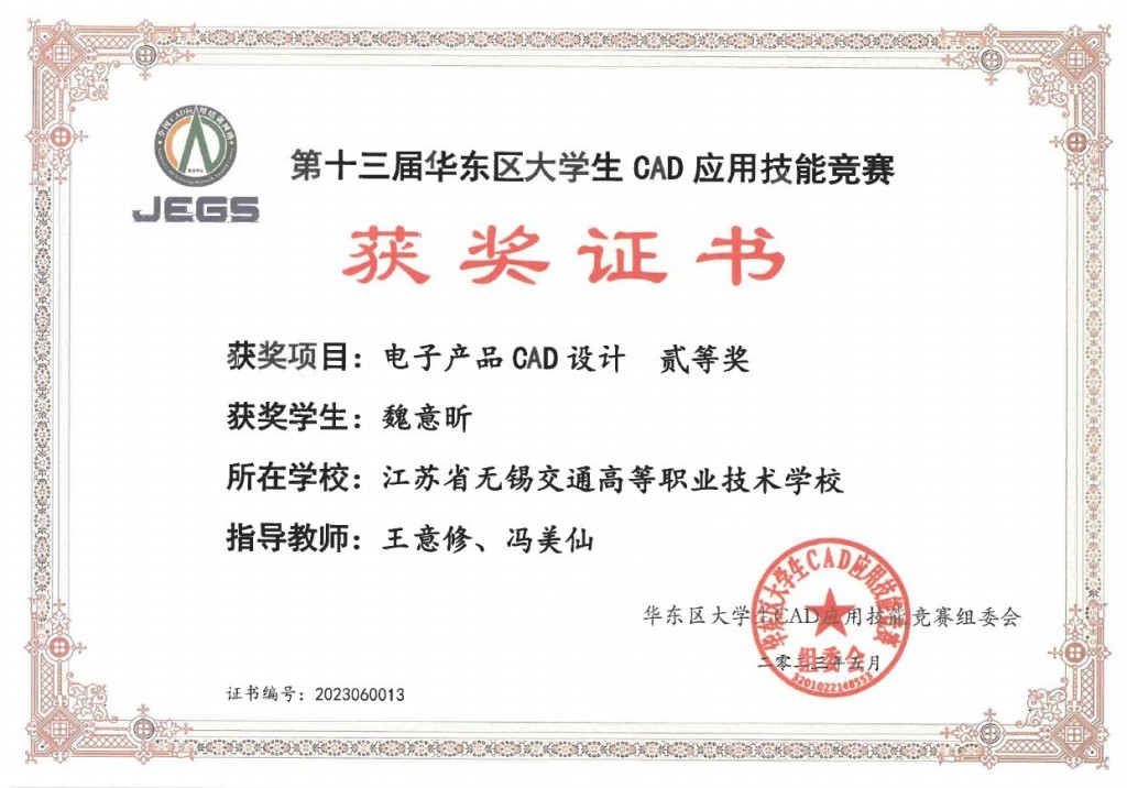 机电工程学院在第十三届华东区大学生CAD应用技能竞赛中喜获佳绩