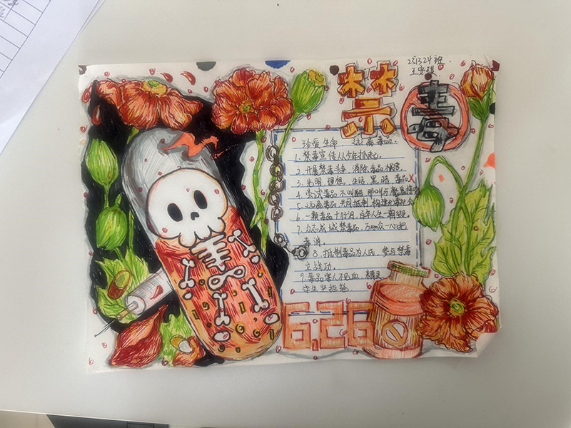 此次活动得到了全院学生的积极响应,同学们发挥所长,紧扣禁毒主题进行设计创作,以影视作品、征文、手抄报、画作等形式为载体,用自己独特的表达方式揭示了毒品的严重危害。