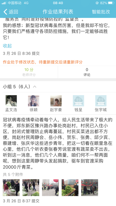 班主任李花老师通过视频介绍新冠病毒、科普分析、交流发言、在云班课上设置如何科学防疫的小测试、每个小组一个主题,分享此次疫情中出现的感人故事、优秀作品展示等几个步骤,为同学们开设了一堂内容丰富,生动且意义深刻的主题班会。同学们也纷纷完成了手抄报感言视频观后感等作品。